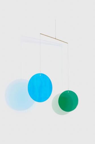 Immer in Bewegung, werfen die bunten Gläser der Mobile wechselfarbige Lichtpunkte in den Raum. Die Gläser wirken je nach Blickwinkel und Lichteinfall, von intensiv farbig, subtil schimmernd, bis hin zu glänzend oder transparent. Die von ihnen ausgehende Stimmung spiegelt den Raum und die Zeit, denn sie entsteht aus dem Zusammenspiel von Umgebung und Licht und der Wahrnehmung des Betrachters.