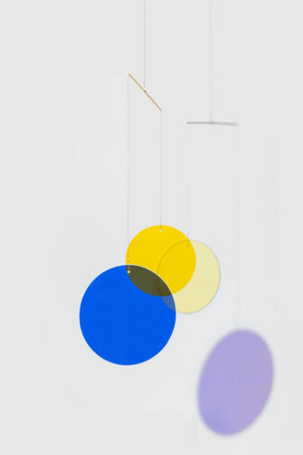 Immer in Bewegung, werfen die bunten Gläser der Mobile wechselfarbige Lichtpunkte in den Raum. Die Gläser wirken je nach Blickwinkel und Lichteinfall, von intensiv farbig, subtil schimmernd, bis hin zu glänzend oder transparent. Die von ihnen ausgehende Stimmung spiegelt den Raum und die Zeit, denn sie entsteht aus dem Zusammenspiel von Umgebung und Licht und der Wahrnehmung des Betrachters.
